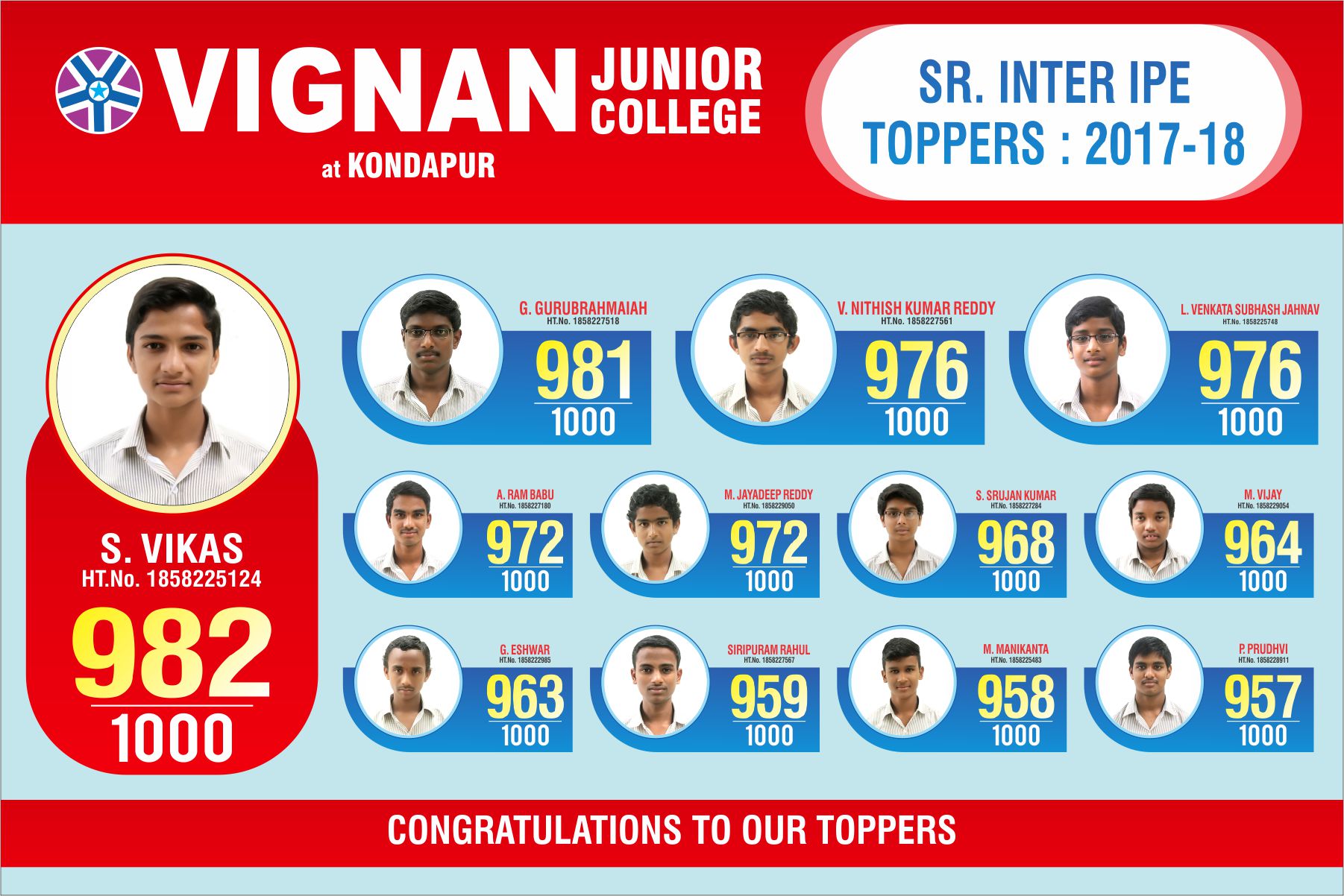 2017-18 JR. & SR. Inter IPE Toppers Results